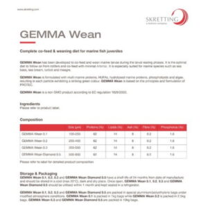 Gemma Wean is formulated with multi marine proteins, HUFAs, hydrolysed marine proteins, phospholipids and algae, resulting in each particle exhibiting a striking green colour. Gemma Wean is based on the principles and formulation of PROTEC and is a non GMO product according to EC regulation 1829/2003