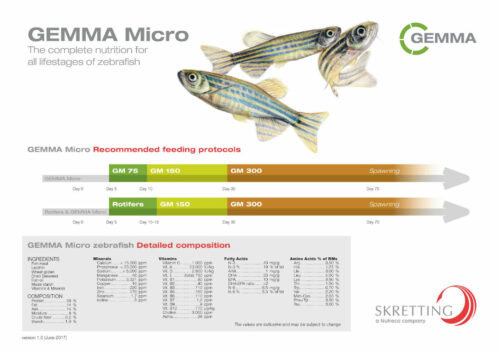 Gemma Micro 75 can be used in early transition to reduce or eliminate rotifers from the feeding protocol of zebrafish.